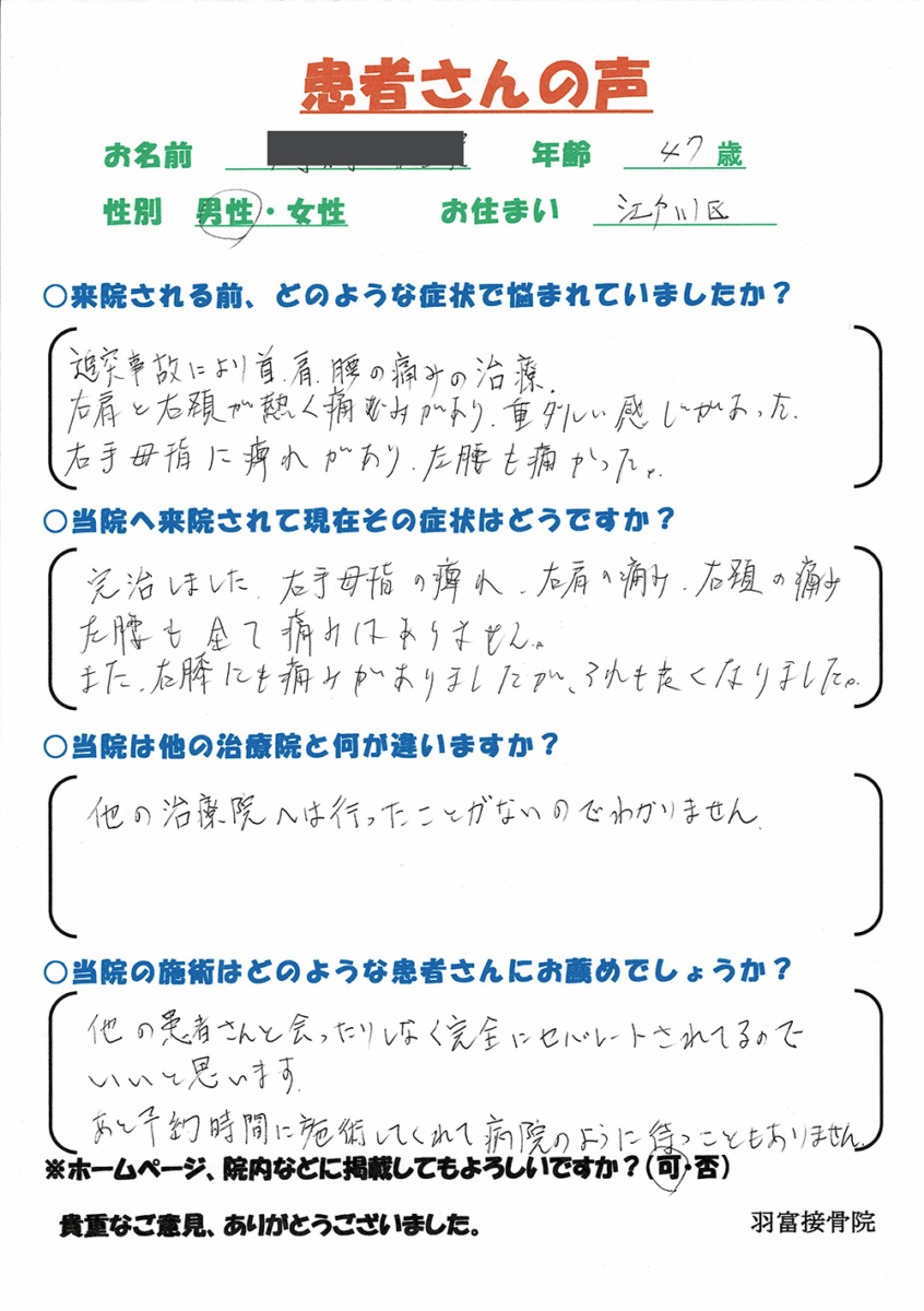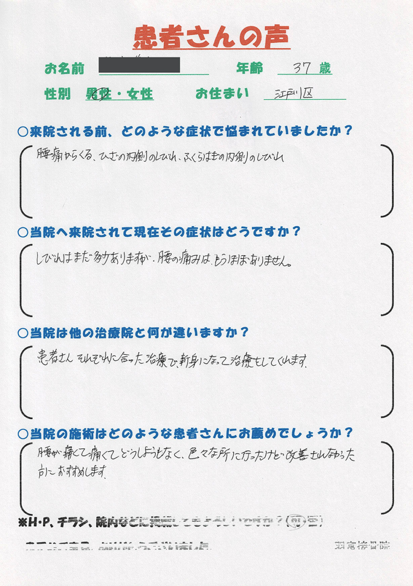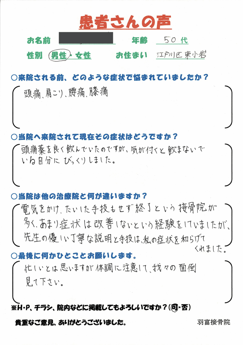 当院の施術を受けられた方々から多くの嬉しい評価を頂いております。